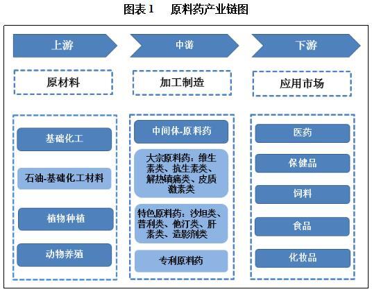 原料药产业链涵盖了上游的基础化工和农林牧渔业,主要包括基础化工、植物种植、动物养殖和部分医药中间体制备等;中游的原料药生产,即通过化学合成、动植物提取、微生物发酵或其他现代生物技术等制备得到原料药;以及下游的化学制剂生产等多个环节。