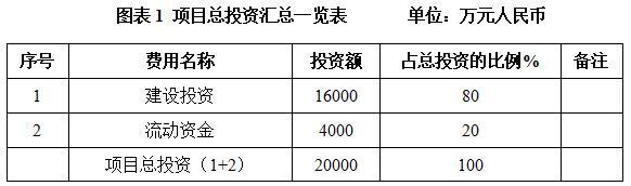 本项目总投资为20000万元,其中:建设投资16000万元,流动资金4000万元。