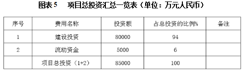 项目总投资为85000万元,其中建设投资80000万元,流动资金5000万元。