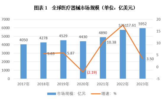 自1895年伦琴率先发现X射线并应用于医学影像X光机后,全球医疗器械技术不断革新,全球医疗器械行业得以迅速发展,并已成为国家经济和技术综合实力的重要标志之一。全球老龄化、慢性病增加和医疗支出增长带来了全球医疗器械市场规模的扩大,新冠疫情更是加速了市场的扩张。据Eshare医械汇测算,2019年全球医疗器械市场规模为4,529亿美元,同比增长5.87%。2020年后,新冠疫情在全球范围的爆发,使得监护仪、呼吸机、输注泵和医学影像业务的便携彩超、移动DR(移动数字化X线机)的需求量大幅增长。全球各国对医用防护用品、核酸检测盒、ECMO等医疗器械订单量激增,销售价格出现较大幅度上涨,部分医疗器械持续脱销。数据显示,2023年全球医疗器械市场规模约5952亿美元,预计到2030年将达到8500亿美元。