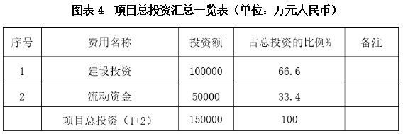 项目总投资150,000万元,其中建设资产投资100,000万元。