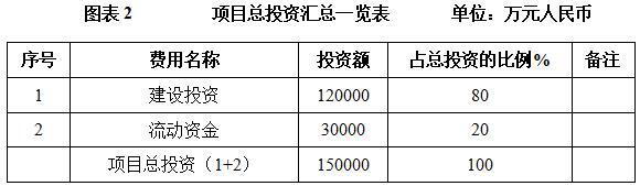 本项目总投资为150000万元,其中:建设投资120000万元,流动资金30000万元。