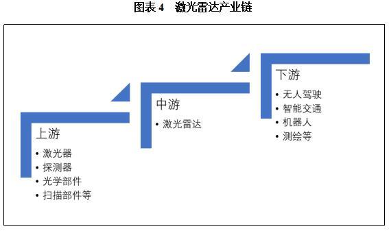 激光雷达作为自动驾驶、工业自动化、消费电子等领域的重要传感器,其产业链可以划分为上游核心元器件供应、中游系统制造以及下游应用市场三个环节。
