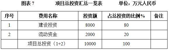 本项目总投资为10000万元,其中:建设投资8000万元,流动资金2000万元。