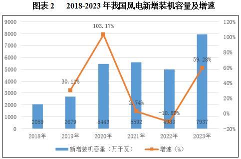 国家能源局数据显示,2023年,我国风电新增装机容量7937万千瓦,同比增加59.28%,风电装机容量逐渐复苏。