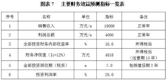 项目达产后,年销售收入18000万元,利润4000万元,投资回收期7.0年(税后,含建设期2年),投资利润率20.0%。