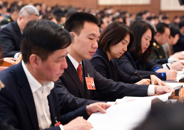2019年1月26日省十三届人大二次会议开幕。图为人大代表认真听取政府工作报告。
