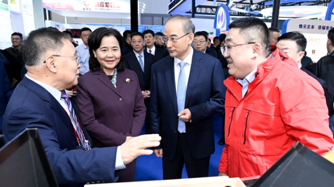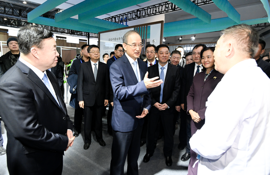本届长春健博会以“新质引领健康、科技共创未来”为主题,吸引了648户企业参展,展出了众多医药健康领域最新科技成果,其中人参产品品类丰富、最受关注。黄强、胡玉亭到吉林长白山人参主题馆、通化展区等展馆展区驻足察看,与商家亲切交流,详细了解参展及经营情况,鼓励商家展好参、卖好参,让货真价实、优质优价成为常态。长春中医药大学和中国科学院长春光机所等多家单位联合攻关,利用高光谱成像仪,开展野山参参龄和质量检测鉴定。黄强、胡玉亭察看了解操作流程,希望他们进一步完善技术,不断提高检测精度,切实提升产品鉴定权威性和可信度。在成都城市展台前,黄强说,吉川两地中医药合作空间广阔,希望双方进一步加强交流互鉴,携手做优做强中医药产业。黄强、胡玉亭还听取了长春·永春现代生物医药城发展规划介绍。