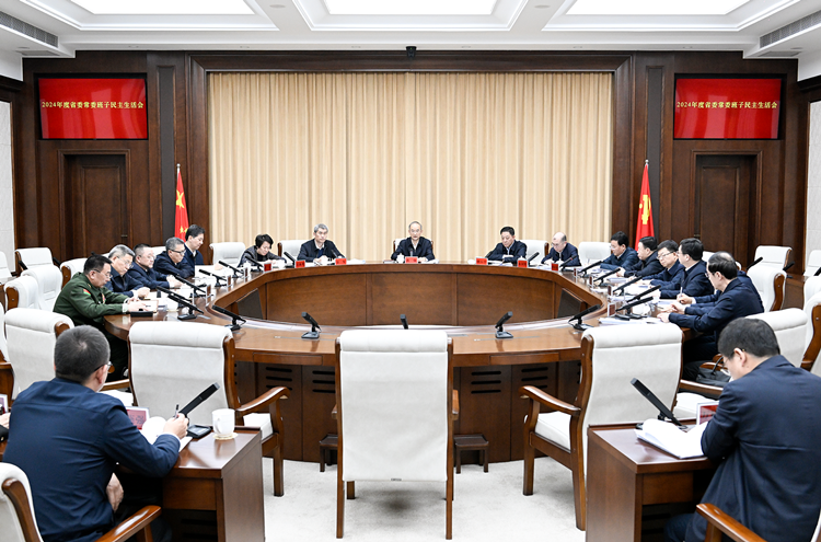 1月9日,省委常委班子召开2024年度民主生活会。省委书记黄强主持会议并讲话。2024年度省部级单位党员领导干部民主生活会第2督导组负责同志到会指导并进行点评。张野 摄