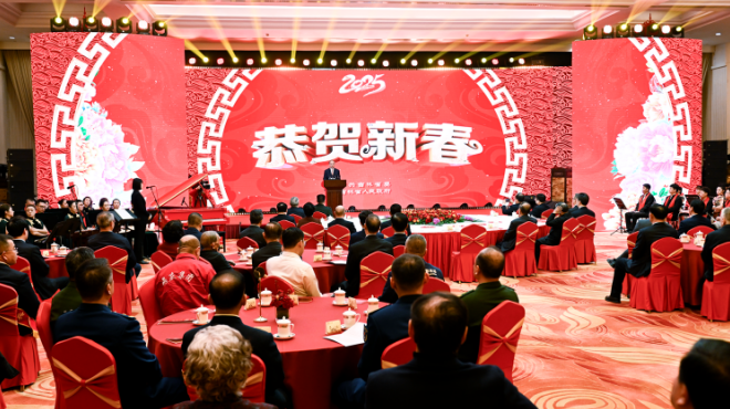 1月23日,省委、省政府在长春举行2025年春节团拜会。省委书记、省人大常委会主任黄强出席并致辞。省委副书记、省长胡玉亭主持。省政协主席朱国贤出席。张野 摄