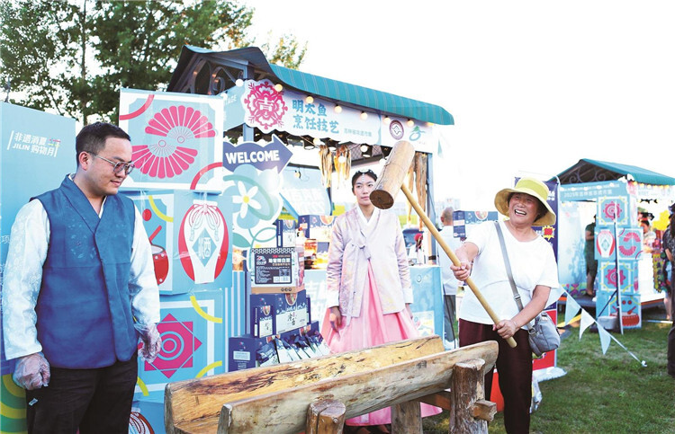 非遗市集上,市民正在体验试做朝鲜族打糕。 刘奥琪 摄
