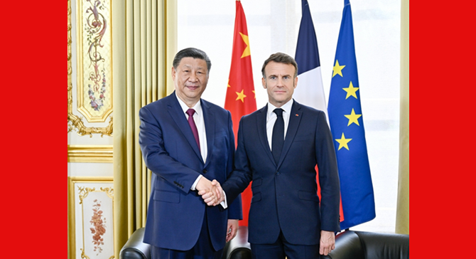 习近平同法国总统马克龙在上比利牛斯省举行中法元首小范围会晤