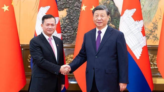 习近平会见柬埔寨首相洪玛奈