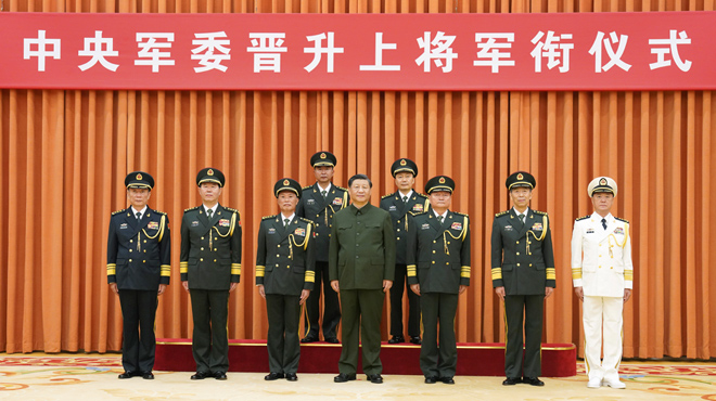 中央军委举行晋升上将军衔仪式 习近平颁发命令状并向晋衔的军官表示祝贺