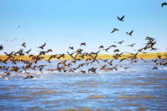 近年来,吉林省西部实施退耕还湿、河湖连通等系列项目,使湿地面积不断扩大。大安市通过实施嫩江湾扩湖增湿、退耕还湿、生态护湿、利用兴湿等恢复保护提升工程,收回恢复嫩江湾湿地4.57万公顷。针对嫩江水位季节性变化较大的特点,大安市建设了两处湿地引水调节闸,丰水期根据需要控制湿地用水,枯水期提水补给,引水500余万立方米。目前,湿地恢复保护已初见成效,野生植被恢复良好,白鹤、灰鹤等20余种野生珍稀候鸟重返觅食、筑巢繁衍。阔别32年的鸬鹚又飞抵嫩江湾,数量达上千只,栖息长达28天,史上从未有过这种南方特有动物成群到此,可谓奇观。