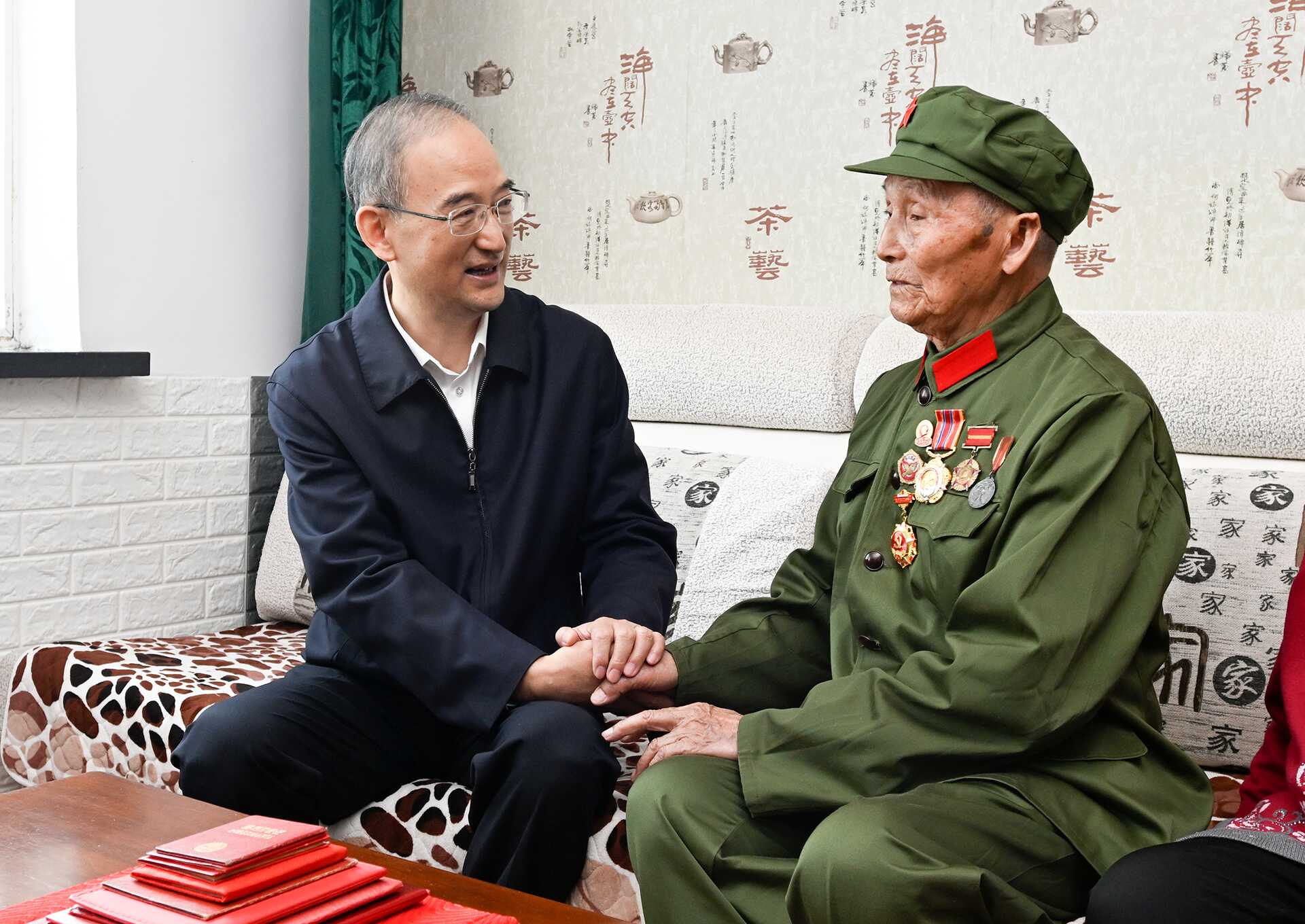 9月29日,省委书记黄强在长春走访慰问抗战老战士孟繁德,关切询问其健康和生活情况。张野 摄