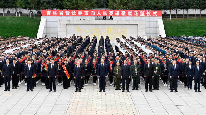 9月30日,省暨长春市向人民英雄敬献花篮仪式在长春市烈士陵园举行。张野 摄
