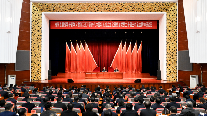 11月13日,省管主要领导干部学习贯彻习近平新时代中国特色社会主义思想和党的二十届三中全会精神专题研讨班举行开班式,省委书记黄强出席并作辅导讲话。省委副书记、省长胡玉亭主持开班式。省政协主席朱国贤出席。张野 摄